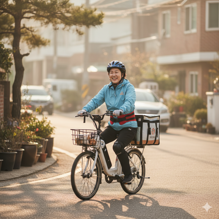 퇴직 후 멈췄던 삶, 자전거 한 대로 다시 달리기 시작했다. 운동도 되고 돈도 버는 ‘두 번째 출근길’에서 그녀는 인생의 방향을 찾았다.